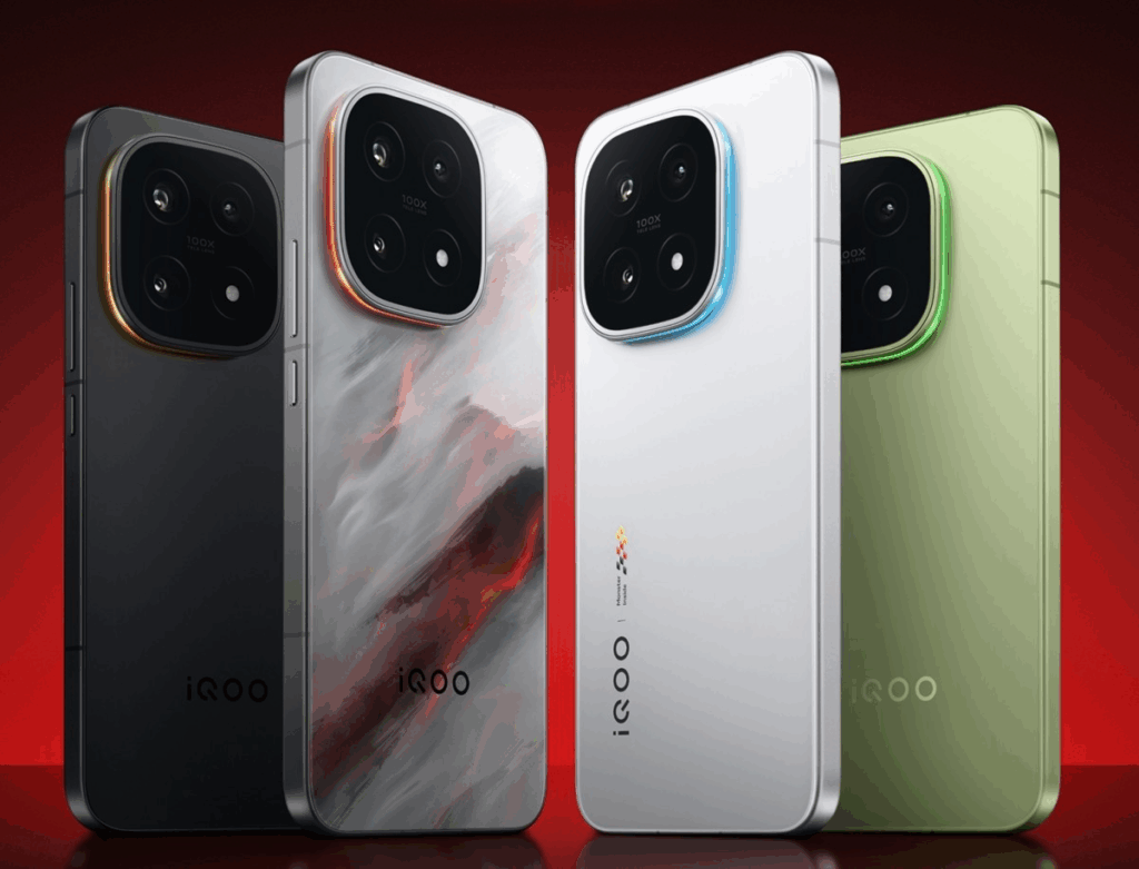 Varian warna seperti Legend Edition, Black Titanium, dan Racing Silver membawa nuansa eksklusif yang memperkuat identitas performa tinggi iQOO. Bagian belakangnya menampilkan modul kamera berbentuk persegi dengan sentuhan garis melingkar yang memberikan karakter sporty — khas DNA iQOO yang selalu mengutamakan kecepatan dan gaya.