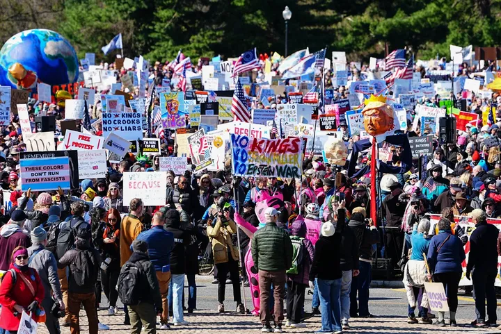 alt text: jutaan orang ikut no kings protest menentang kebijakan Trump di berbagai negara